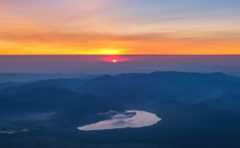 この日は雲が多い日だったのですが、夕陽が差し込み海面に反射する風景が見えるかと思うと、反対側には真っ青な青空!という2つの景色を楽しむことができました。
