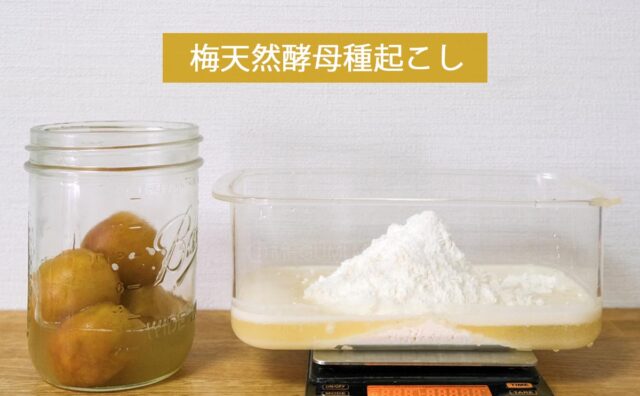 天然酵母種と水を先に混ぜてから、粉に入れると均一に混ざりやすいです。