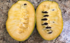 裏庭にある謎のフルーツPawPawも今がシーズンなので食べています。